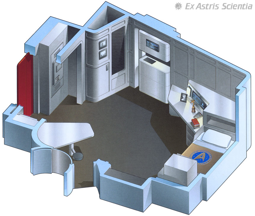 - Examples: Senior Officers' Quarters, Junior Officers' Quarters (Exact layouts vary depending on location in ship, ie catamaran hulls versus edge of saucer.)